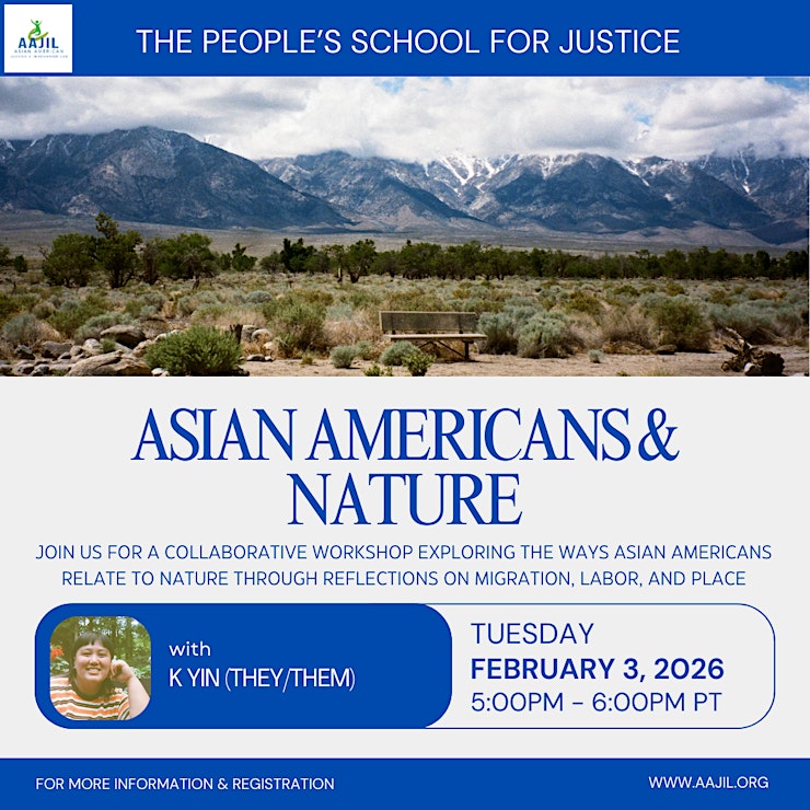 Participants will come together to reflect on the landscapes and everyday environments that shape Asian American lives. Thinking expansively about both “Asian America” and “nature,” and centering lived experience, we will explore how migration, family history, and place influence our relationships with our environment.