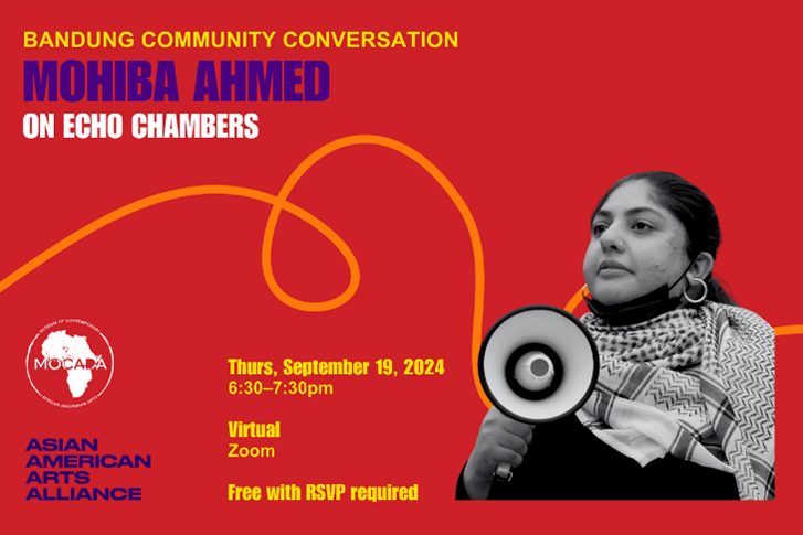 A4 and MoCADA present Bandung Community Conversation: Echo Chambers with Mohiba Ahmed, a dedicated community organizer at DRUM (Desis Rising Up and Moving). Ahmed brings extensive experience from grassroots feminist movements and student rights organizations in Pakistan and is a founding member of the Progressive Students’ Collective and Haqooq-e-Khalq Party Pakistan.