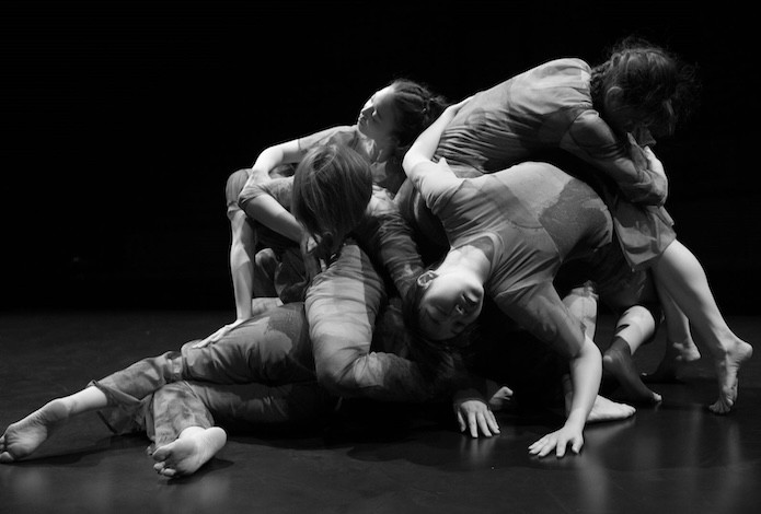 From Japan, Where we were born, choreographed by Ruri Mito and performed by ensemble Co. Ruri Mito, weaves and unravels delicately and intricately connected dancers, creating one kaleidoscopic body.