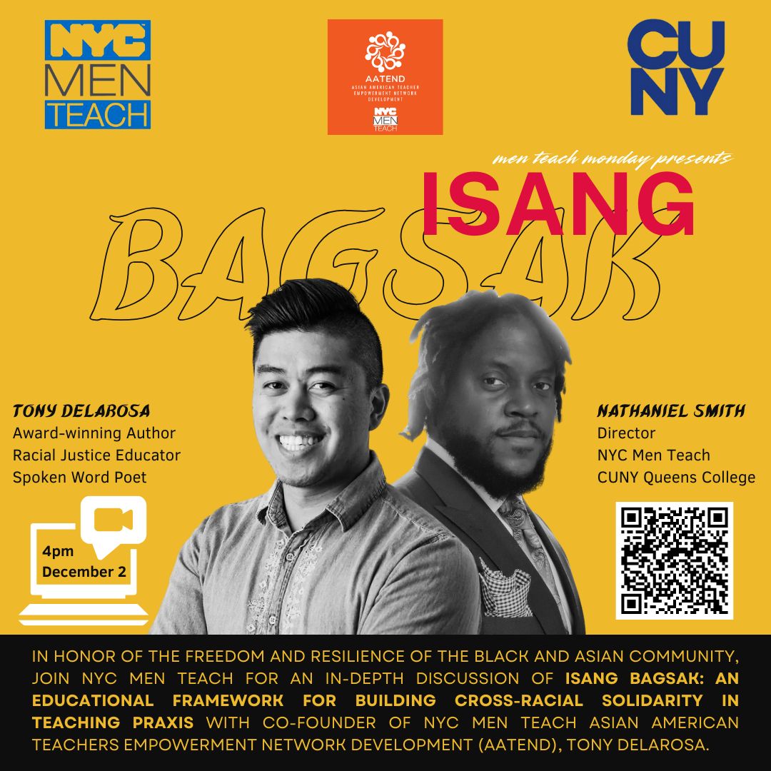 In honor of the freedom and resilience of the Black and Asian community, we invite you to join NYC Men Teach on Monday, Dec 2 at 4 pm ET for an in-depth discussion of “Isang Bagsak: An Educational Framework for Building Cross-Racial Solidarity in Teaching Praxis.”