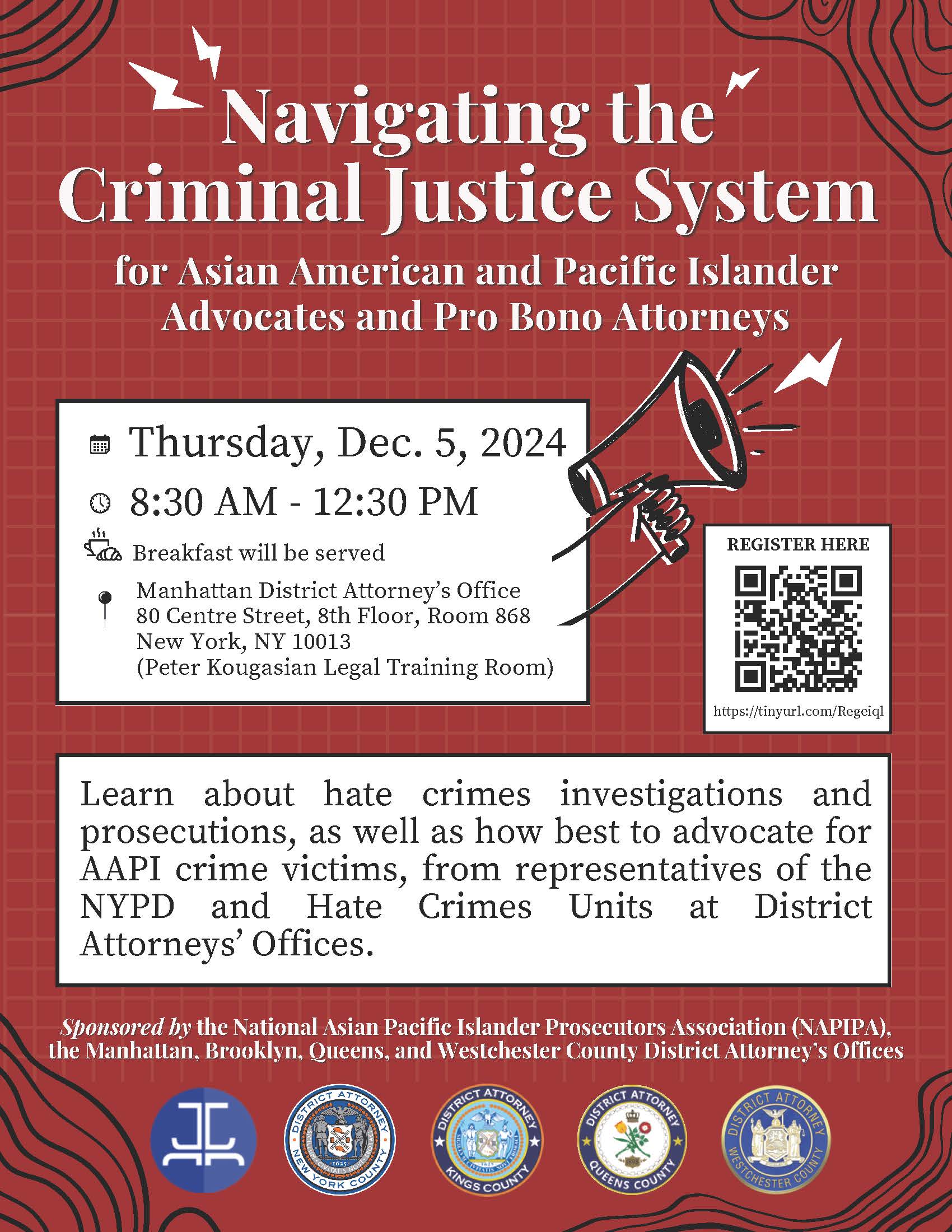 The Manhattan District Attorney’s Office is hosting a training for AAPI crime victim advocates on December 5th, 2024 at 8:30am. We are excited to extend an invitation for you to attend and to also help spread the word to others who are doing this important work.
