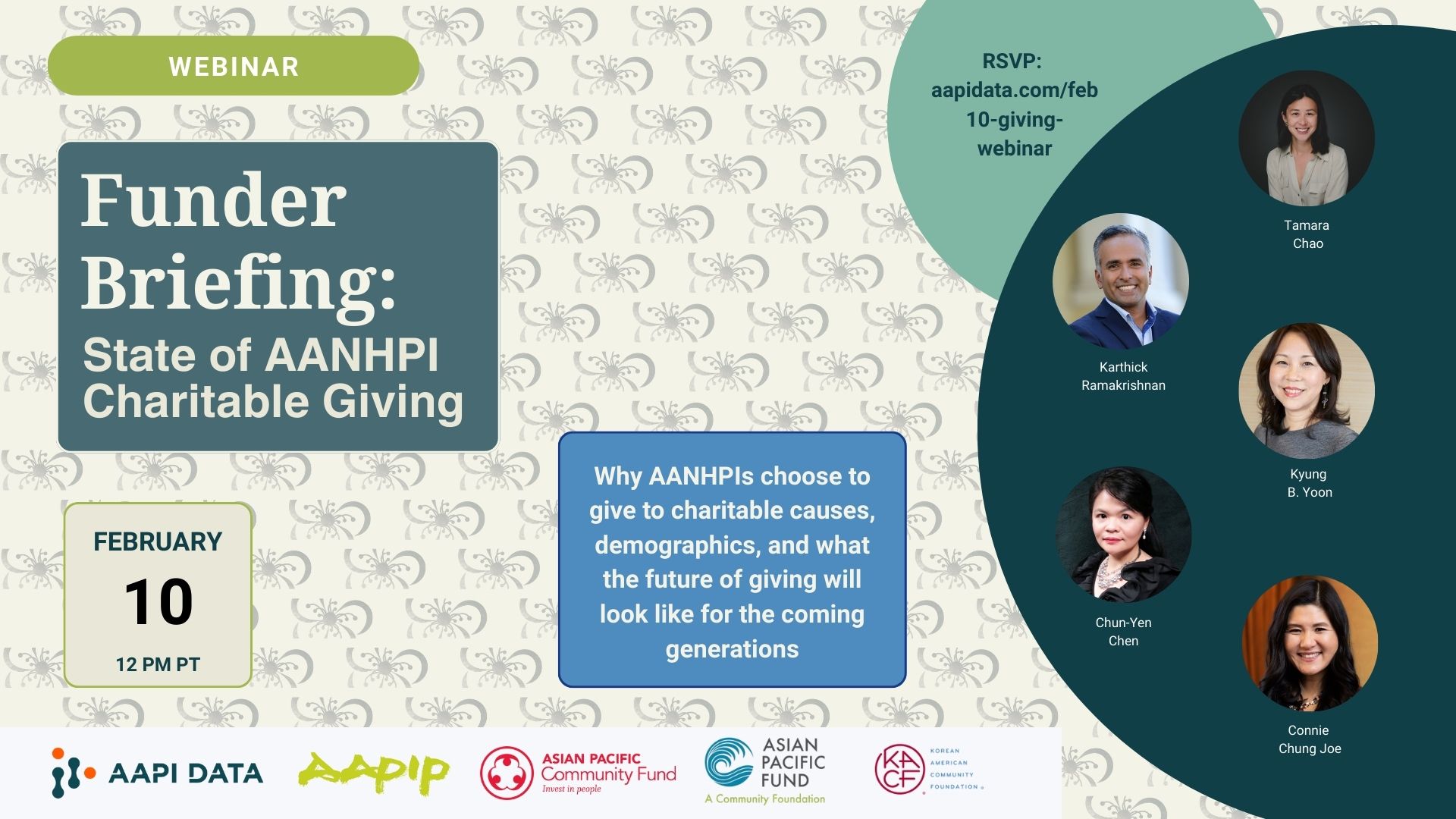 Join AAPI Data, AAPIP, Asian Pacific Community Fund, Asian Pacific Fund, and Korean American Community Foundation for this funder briefing on the State of AANHPI Charitable Giving. This briefing will share the latest insights from the most comprehensive survey sample of Asian Americans, Native Hawaiians, and Pacific Islanders, administered by AAPI Data and AP-NORC. Specific findings will include the reasons why AANHPIs choose to give to charitable causes, demographics, and what the future of giving will look like for the coming generations.