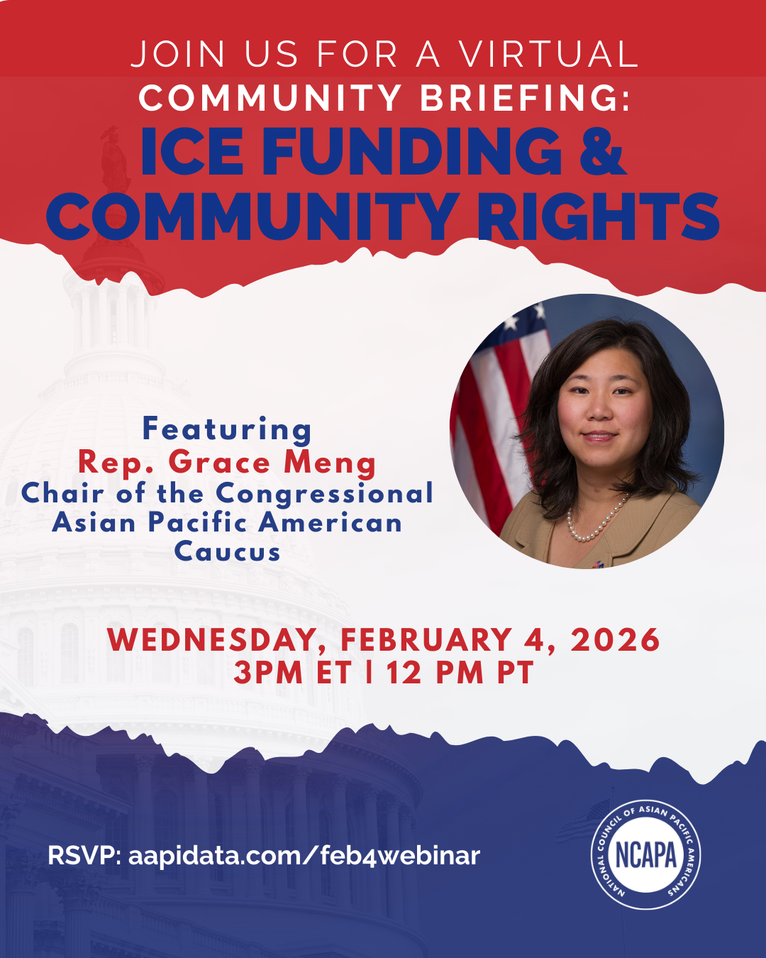 Join the National Council of Asian Pacific Americans (NCAPA) for a virtual community briefing, “ICE Funding and Community Rights: What AAPIs Need to Know.” Hear timely updates on immigration enforcement and how current DHS and ICE actions are impacting AAPI communities nationwide.