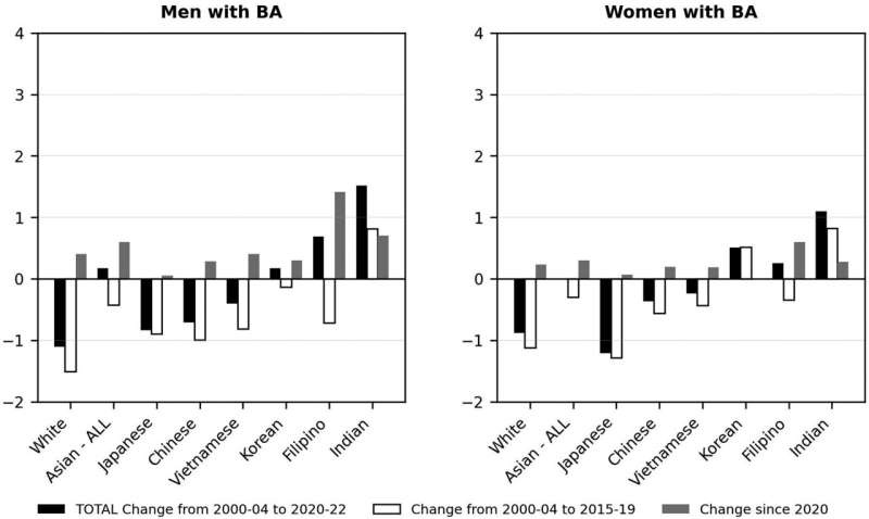Changes in years of life lost by race/ethnicity among individuals with a bachelor’s degree, by period. Credit: The Journals of Gerontology, Series B: Psychological Sciences and Social Sciences (2026). DOI: 10.1093/geronb/gbaf248
