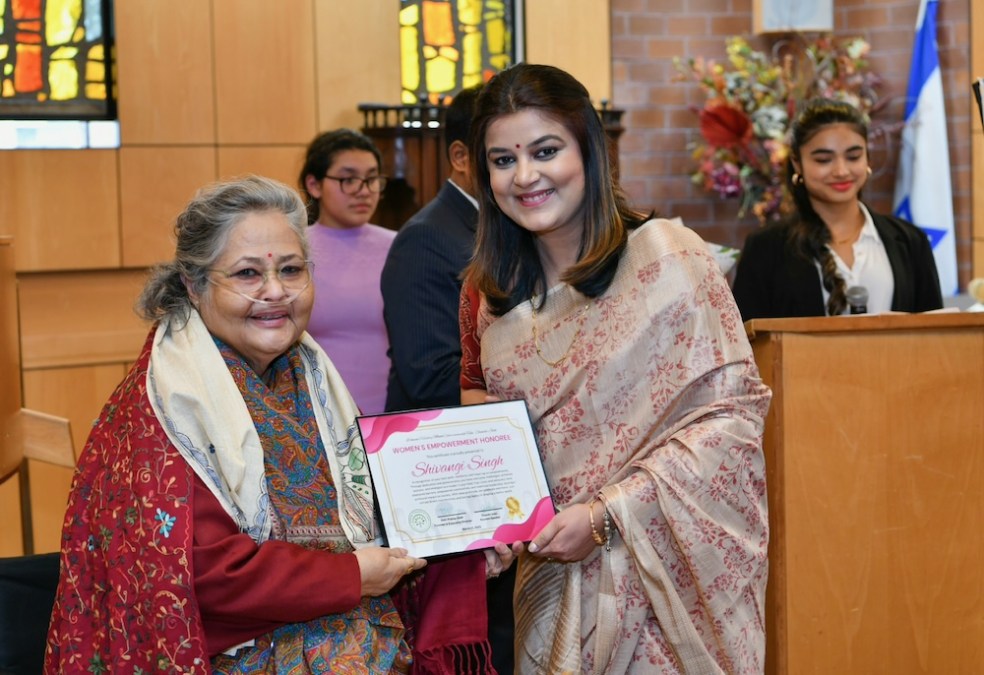 Shivangi Singh receives the Women’s Empowerment Honoree Award from Chandani Joshi | Photo Credit: Shivangi Singh